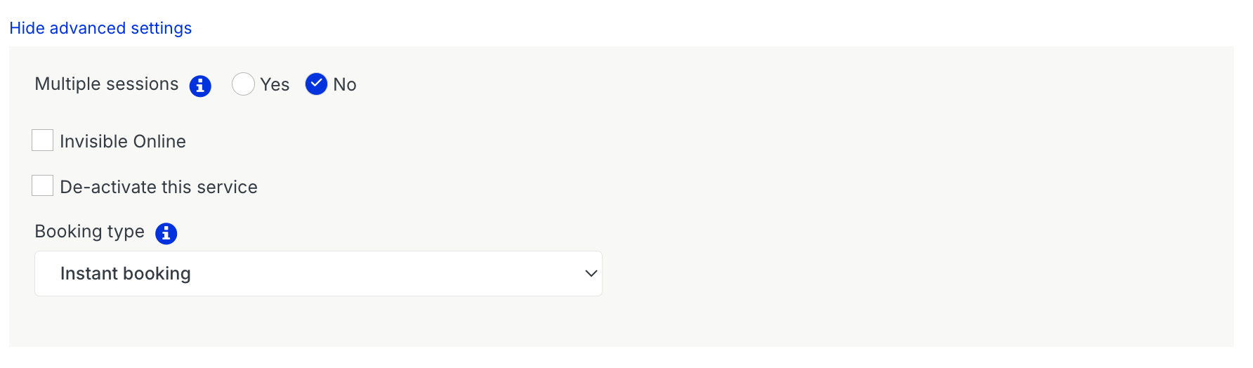 - Booking Type – choose between Instant Booking (confirmed immediately)
