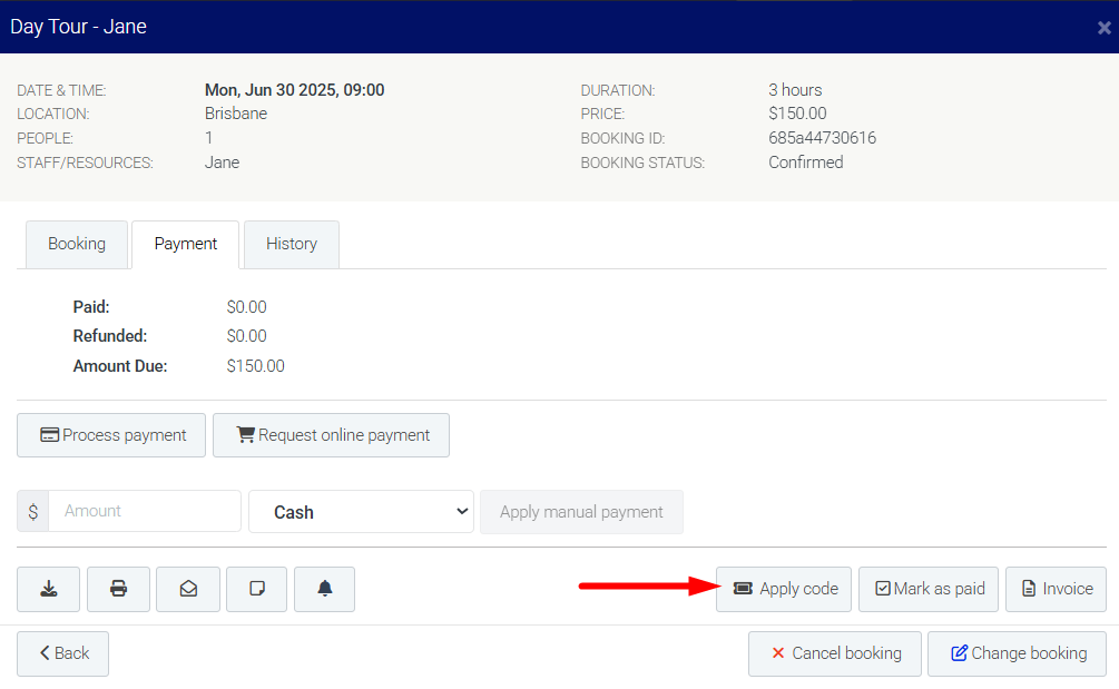 ⚠️ Warning: Promo codes can only be applied when online payments are taken at the time of booking. If you don't collect payment at booking, promo codes aren't available. As a workaround, create a separate service at the reduced rate and arrange payment offline.